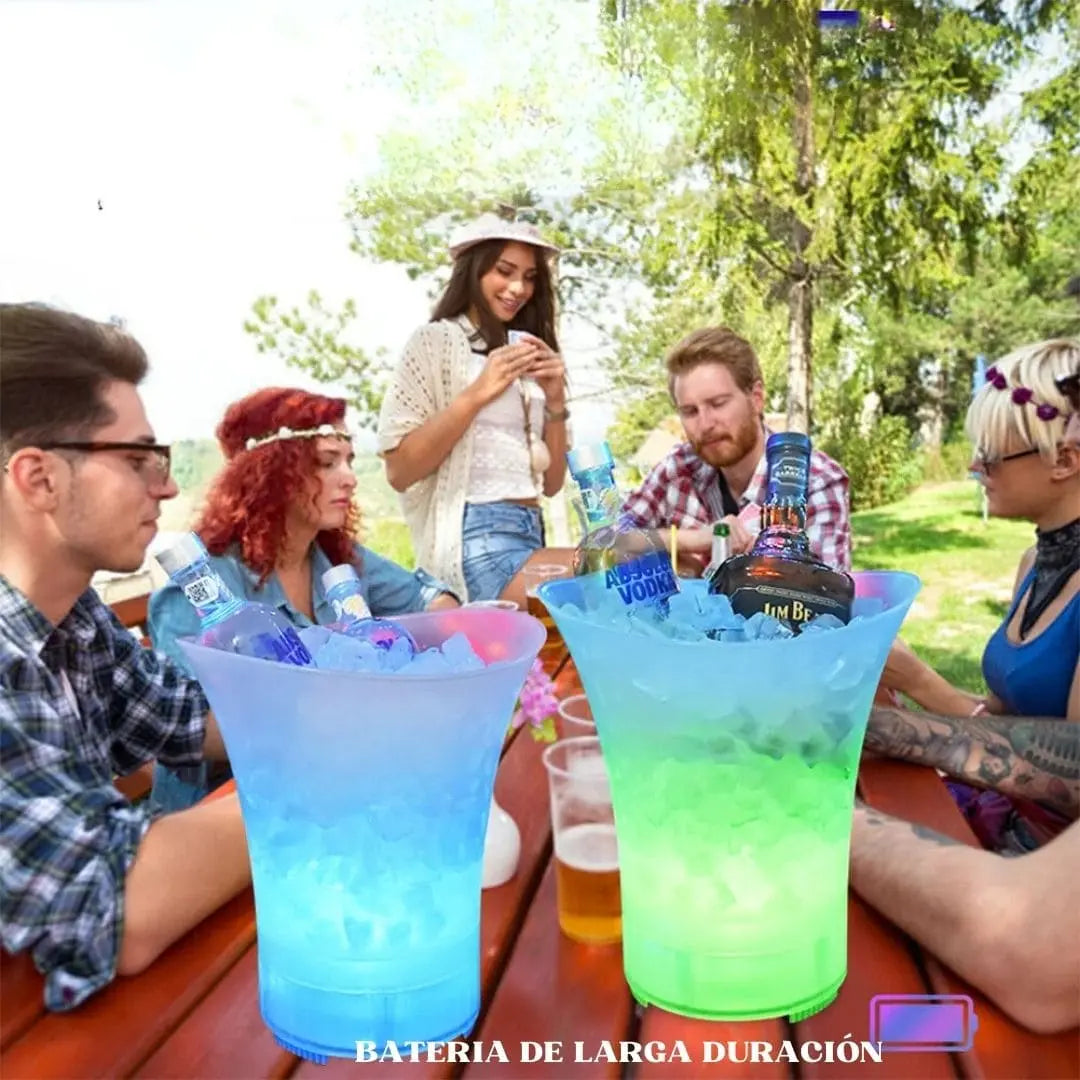 Descubre el balde hielero led con parlante Con 4 modos de iluminación LED, y transforma cualquier evento con luces que cambian de color y siguen el ritmo de la música.