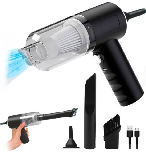 - Potencia Imparable: con 120 w , esta mini aspiradora asegura una succión fuerte y constante para eliminar la suciedad más difícil.
